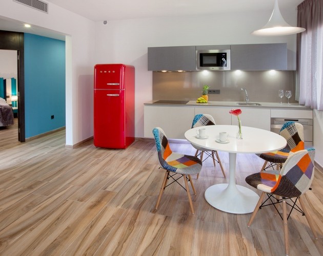 Todas las suites cuentan con climatización completa, televisión por satélite en todas las habitaciones, cocina totalmente equipada, wifi gratuito y sistema de control domótico. Su estilo puede variar según la suite asignada, pero todas mantienen un ambiente sofisticado y acogedor pensado para una estancia inolvidable.
